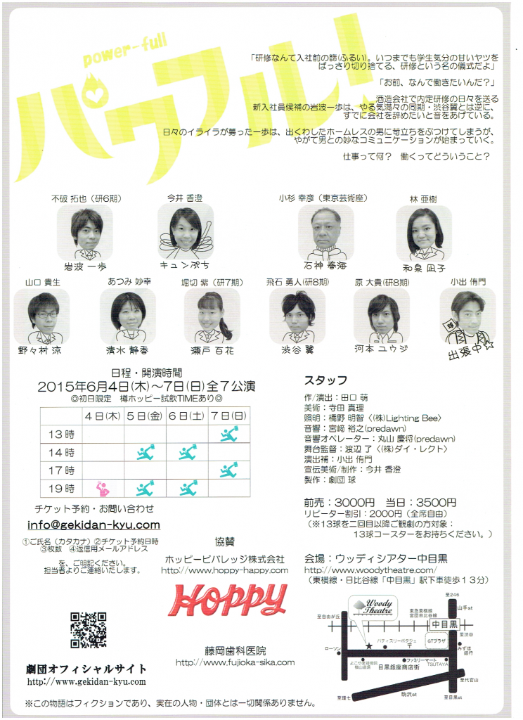 さて、そんな憂鬱をも吹き飛ばす劇団「球」による「パワフル」が6月4日(木)から6月7日(日)に中目黒のウッディシアター中目黒で開演します‼
