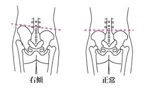 <検査>骨盤・・・・左の骨盤が1.5㎝上がっていることで、右のウェストのくびれがなく、左のくびれがかなりある。骨盤の開きはそれほどないが反り腰が強く、下腹部が出るポッコリお腹になっている。