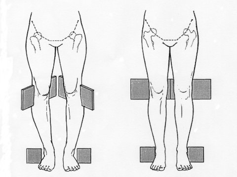 構造的(先天的)O脚。骨格自体が曲がっているO脚もあり、根本的改善には至りませんが筋肉を弛緩させる事により日常生活に支障を来さない程度に改善する事もあります。(個人差あり)姿勢指導・体操・矯正施術で症状を緩和もしくは進行防止をさせる事が出来る可能性があります